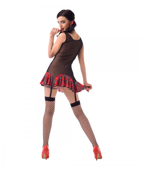 - Соблазнительное полупрозрачное платье с лифом и подолом в красную клетку. Платье идеально садится по фигуре, соблазнительно просвечивая тело, тем самым распаляя мужское воображение до предела! Глубокое декольте акцентирует внимание на бюсте. А, пажи для чулок придают особенную пикантность образу!