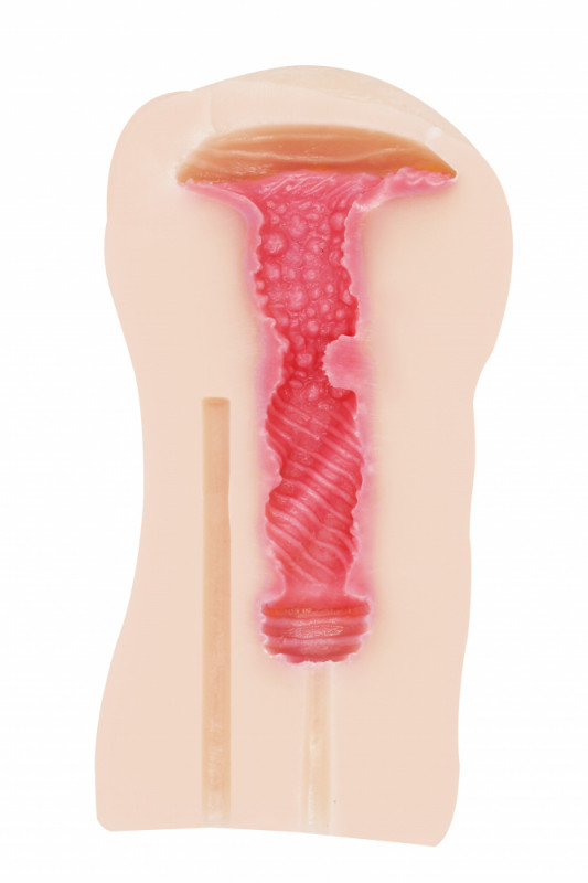 Реалистичная вагина с ярко выраженными половыми губами, так и жаждет проникновения... Внутренний рельеф с выступами, шариками, ребрами, изгибами, не оставит без внимания ни один миллиметр члена!
