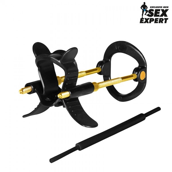 1.  При начале курса ношения "Sex Expert"  его потребуется собрать подобрав оптимальную стартовую длину. Для расчёта длины используется следующая простая формула: длина члена в состоянии эрекции минус четыре сантиметра. К примеру, 15 – 4 = 11 сантиметров. Для регулировки длины в комплектации прибора есть две пары дополнительных штанг (2 по 3.5 и 2 по 5 см.). Настройка осуществляется путем их замены или добавления в конструкцию